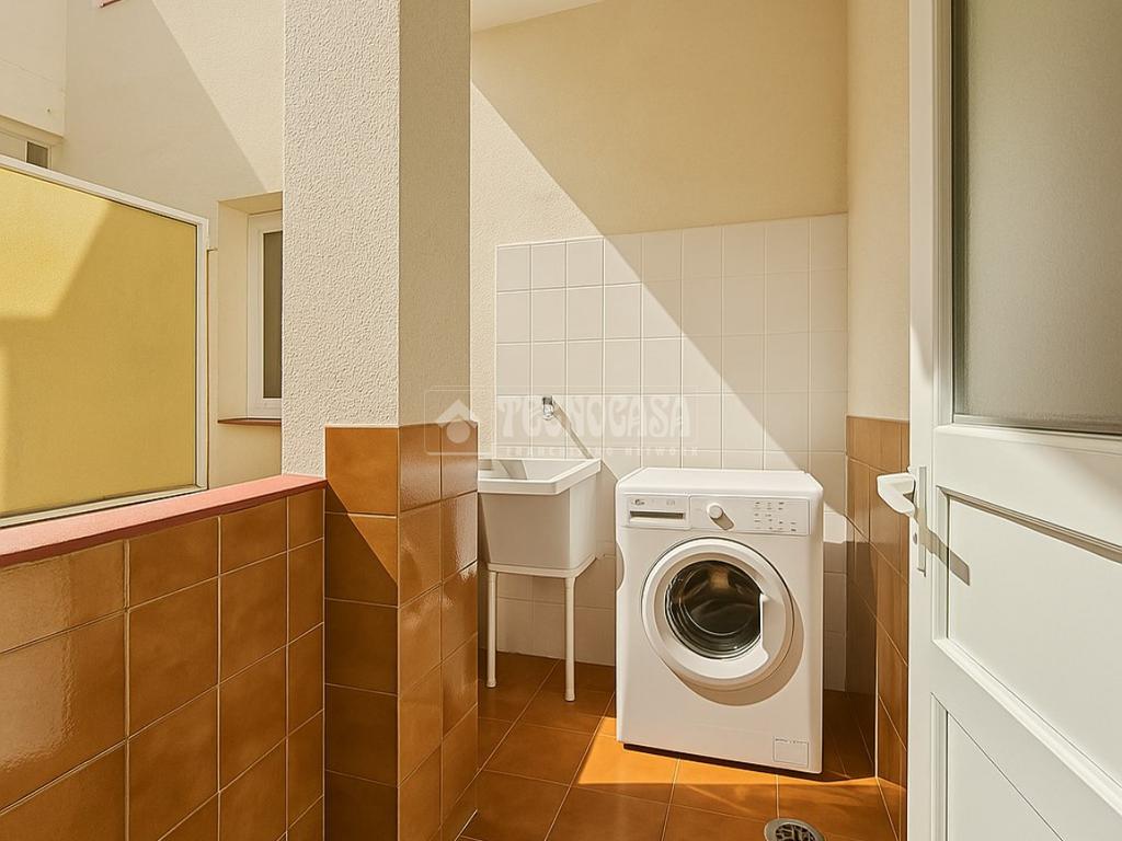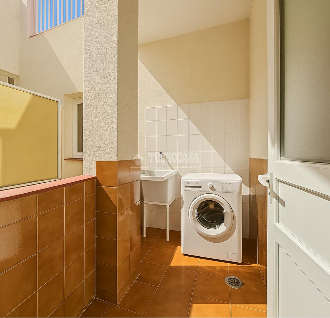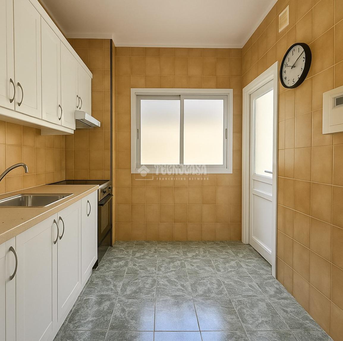 La cocina es independiente provista con cocina a gas y cuenta con ventilación natural, además de estar conectada a una práctica solana, con espacio para lavadora y zona de tendido.