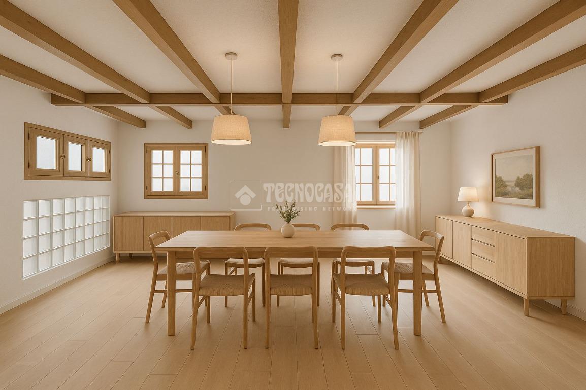 Para continuar con la descripción de este hogar continuamos subiendo las escaleras para acceder a la primera planta de la vivienda donde tenemos 3 amplios dormitorios, 2 baños, una cocina con acceso al patio interior y un gran salón comedor.