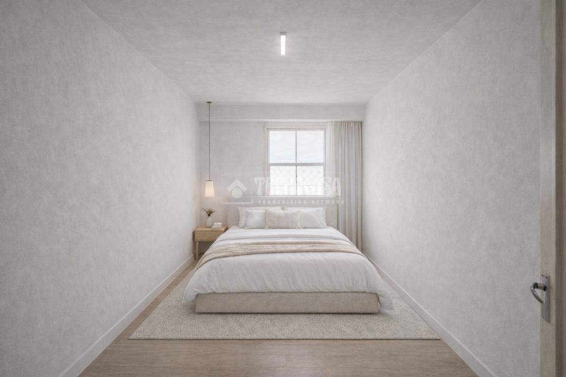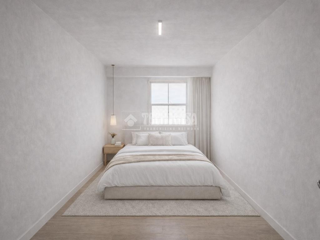 Al acceder a la vivienda apreciaremos que cuenta con un amplio y luminoso salón comedor, conectado con la cocina a reformar, a nuestra izquierda encontraremos el pasillo que da acceso a las cuatro habitaciones, bastante luminosas, con balcón que permite apreciar todo el centro de Santa Cruz y finalmente nos encontramos con el baño espacioso que cuenta con bañera.