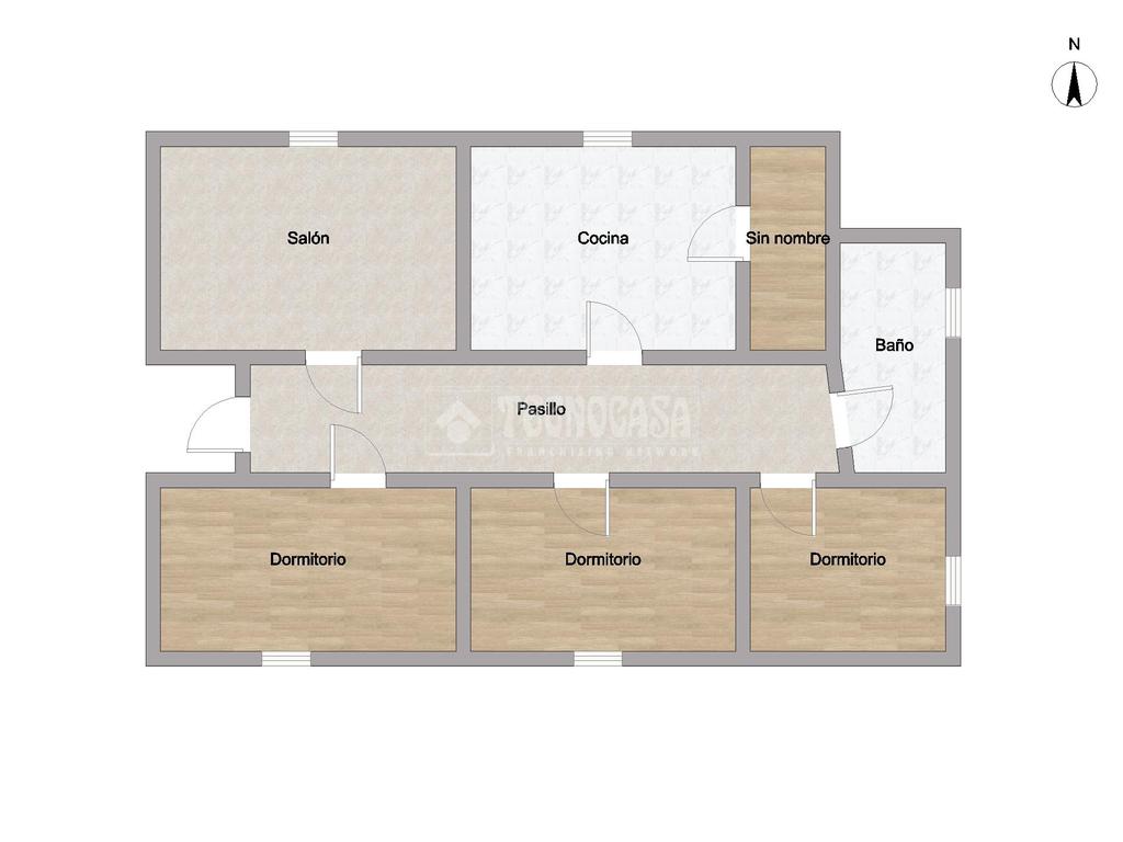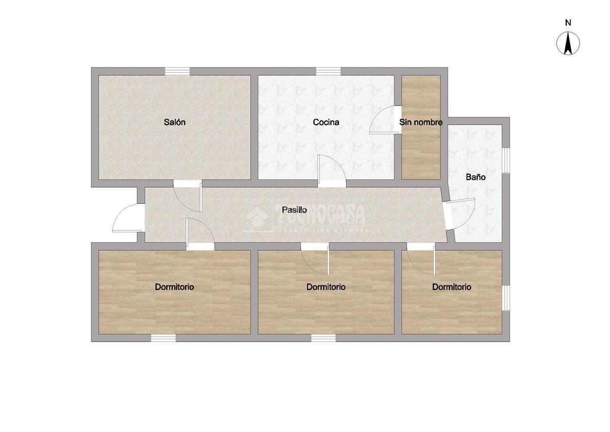 Al acceder a la vivienda nos recibe un espacioso y luminoso salón-comedor, que aporta una agradable sensación de amplitud. Desde aquí se conecta cómodamente con la cocina. A través del pasillo, encontramos a la derecha el baño completo, equipado con plato de ducha, y seguidamente las tres habitaciones, todas ellas amplias y bien iluminadas. El salón dispone además de un balcón cerrado, ideal para disfrutar de agradables vistas a la zona de Los Gladiolos.